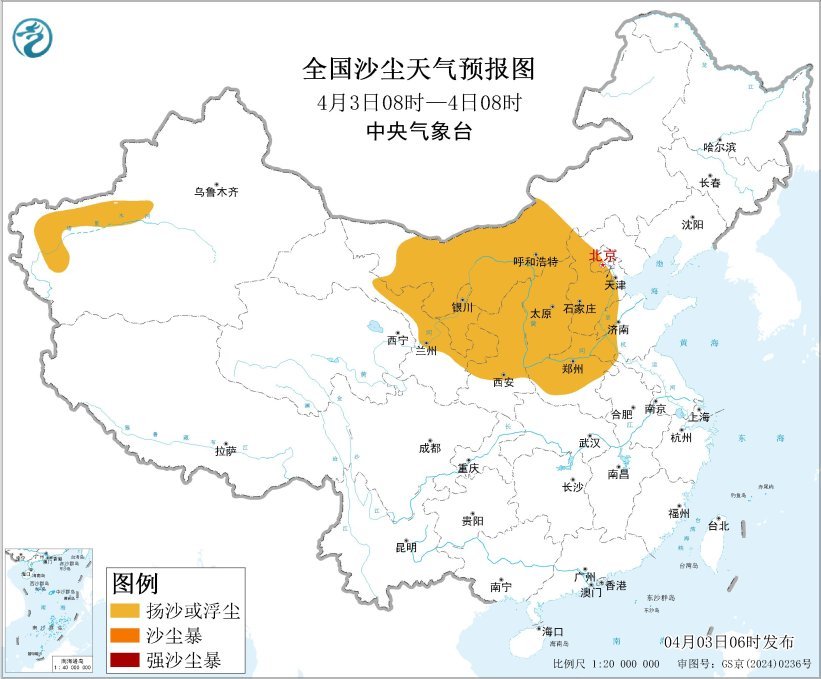 齐邦年夜风预告图(4月3日08时-4日08时) 。图片根源:中心气呼呼象台网站